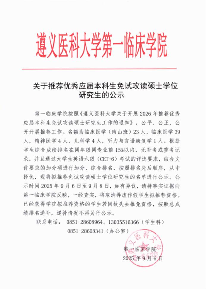 关于推荐优秀应届本科生免试攻读硕士学位研究生的公示