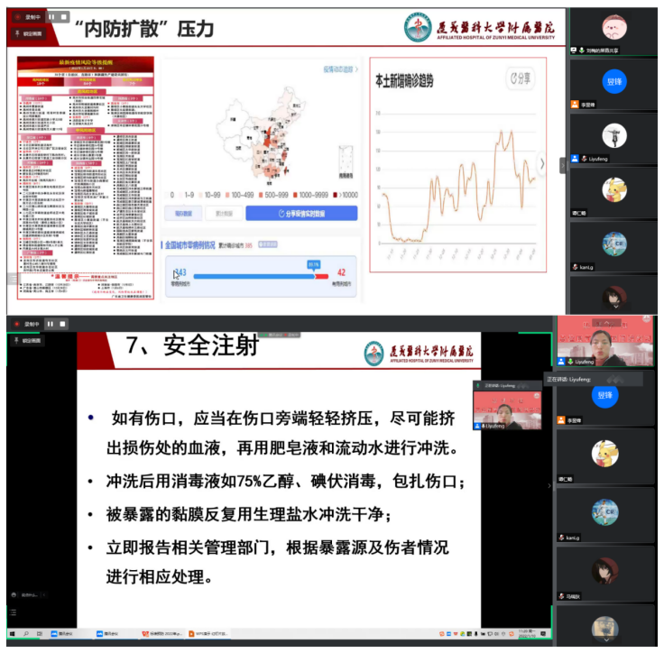 为进一步加强新进实习生的规范化管理,使实习生尽快适应从员工到实习医师的角色转换,永利yl23411教务科于2022年1月10日借助直播平台,线上开展了2022年永利yl23411附属医院实习生岗前培训活动。在遵医附院实习的2018级临床医学(卓越医师、普通临床、全科)、儿科学、麻醉学、医学影像学、口腔医学、法医学、预防医学、临床药学等专业实习生500余人在医院各个临床专科集中组织参加线上培训。