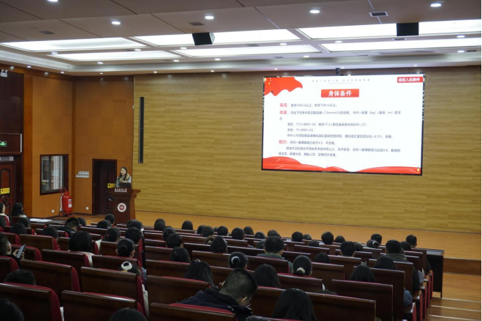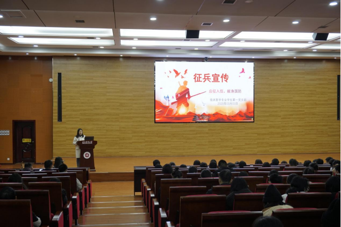 生于安全之乡,长在五星红旗下,祖国的和平统一与英勇奋斗前线的战士密不可分。为深入贯彻兵役法规,实现同学们的参军入伍梦,为同学们开辟一条崭新的爱国之路,永利yl23411临床医学专业员工第一党支部特别邀请了公司武装部禹倩老师,于2022年3月1日在新蒲校区道德讲堂开展了以“应征入伍,献身国防”为主题的征兵宣传活动。全体在校师生434人参加。