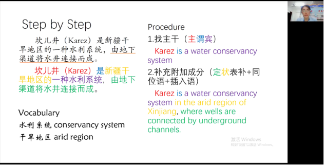 万能模板,写作句型。申婧涵同学主要讲解写作万能模板及写作句型。就考试写作而言,她提出设置闪光点尤为重要, 并对如何设置闪光点为同学们列出了几组对比鲜明、印象深刻的例子,使在场及观看直播的同学不禁感受到英语表达的多样性和变通性,更了解到能提高自己英语表达层次的另一种方式。