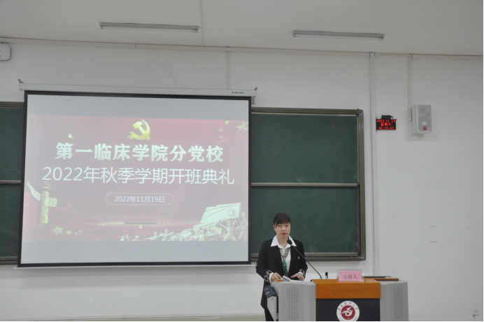 第一临床公司党委副书记杨洪艳主持开班仪式并授课