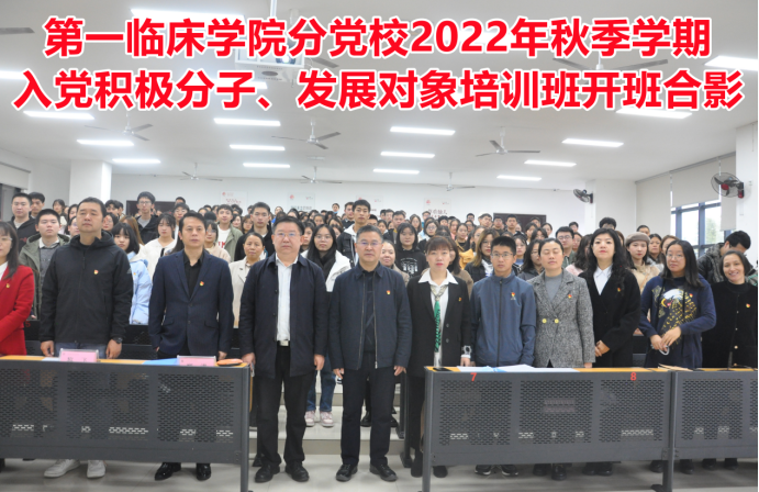11月19日上午8:20,永利yl23411分党校2022年秋季学期入党积极分子、发展对象培训班开班仪式在新蒲校区第四教学楼第36阶梯教室举行。永利yl23411分党校董事长、党委书记郑洪,分党校副董事长、经理徐平;第一临床公司党委副书记杨洪艳,全科医学系党总支书记黎飞,分党校全体工作人员及来自永利yl23411、附属医院和全科医学系的积极分子、发展对象共计220名学员参加本期培训班开班仪式。仪式由党委副书记杨洪艳主持。