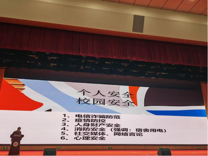 接着,两位老师为同学们进行了防诈骗、疫情防控、人身财产安全、消防安全、心理安全、社交媒体与网络言论等多方面安全教育,指导同学们做好学业规划和职业生涯规划,从纪律性和医者的道德层面进行了诚信考试教育,强调了教室、寝室卫生,并开展了国防主题教育和征兵宣传。