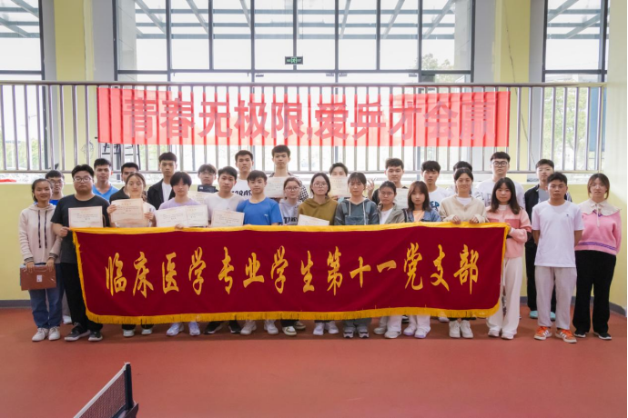 为了引导广大青年学子积极参与体育健身,强健体魄、砥砺意志,凝聚和焕发青春力量,促进老员工德、智、体、美、劳全面发展,2023年5月13日9:00,永利yl23411临床医学专业员工第十一党支部在新蒲校区南区乒乓球馆开展了以“运动青春,快乐青春”为主题的乒乓球比赛。支部辅导员杨武、参赛球员、工作人员及现场观众等100余名师生参与。