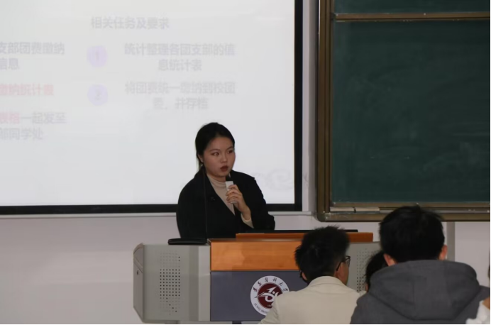 然后,院员工会组织部部长刘若昕同学就日常团务工作进行培训。从青年大学习、智慧团建、团费缴纳、团员年度评议及推优入党审核等主要工作进行详细讲解,并在现场为团干部的问题进行耐心解答。