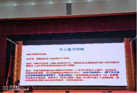 本次讲座为同学们进一步明确了目标定位,解开了考研路上的疑惑,提供了的备考经验,激发了更多同学的考研热情。通过此次讲座,希望同学们提前规划,认真准备,摆正心态,在今后考研路上,披荆斩棘,大展宏图。