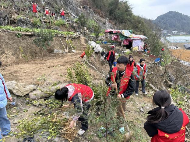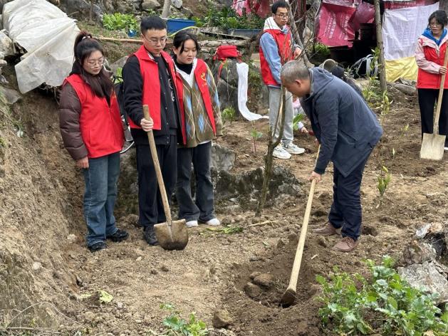 沐浴和煦春风,支部40余名党员和积极分子分工协作,热情洋溢,干劲十足。挖坑挖土、扛苗散苗、摆正树苗、培土浇水,大家井然有序的忙活着,每道工序都一丝不苟,确保树苗栽种一棵、成活一棵。湘江村的村干部还现场为同学们示范栽种,并现场讲解一些栽树和树苗成长的知识。在大家的共同努力下,300余棵新栽种的树苗错落有致、迎风挺立,在明媚的阳光中散发着勃勃的生机。