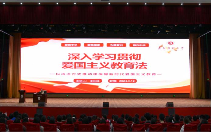 通过爱国主义教育法的学习,王东红强调,希望同学们能厚植爱国主义情怀,爱国、爱党、爱社会主义,增强国家认同感和归属感、培养自身社会责任感和奉献精神、塑造正确的价值观和人生态度,努力为实现中华民族伟大复兴的中国梦贡献青春、智慧和力量。