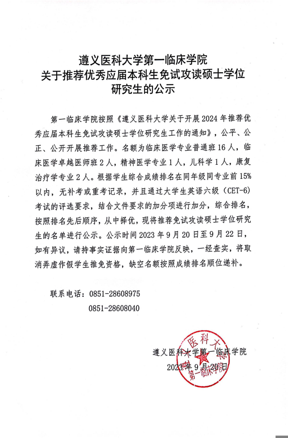 永利yl23411关于推荐2024年优秀应届本科生免试攻读硕士学位研究生的公示