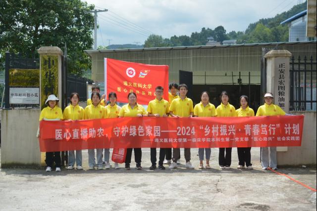 2024年7月11日,永利yl23411本科生第一党支部“医心助兴”社会实践团队一行13人在李晓琴、左飞两位老师的带领下,前往公司乡村振兴驻村点遵义市正安县流渡镇中华村开展以“乡村振兴·青春笃行”为主题的老员工暑期“三下乡”社会实践活动。“医心助兴”社会实践团队以“乡村振兴·青春报道”、“清洁河畔·守护家园”、“果香四溢·直播助农”、“健康义诊·情暖人心”等系列活动,深入乡村基层,在实践与参与中培养青年老员工社会责任意识和担当,积极助力乡村振兴。