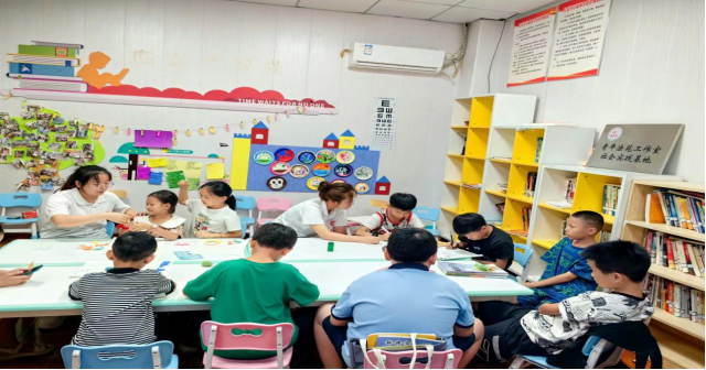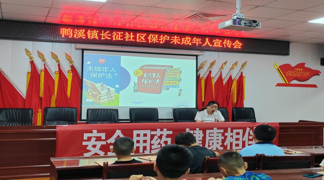 搭建法治教育关爱桥梁,筑牢生命健康安全防线。在鸭溪镇长征社区党员群众综合服务中心,实践队将法治宣传融于志愿服务,围绕“安全用药•健康相伴”“关爱未成年•守护爱心田”主题,通过法治知识大闯关、举手抢答等喜闻乐见的形式,向社区小朋友普及《未成年人保护法》《禁毒法》等法治常识。实践队员把法律术语知识转化为通俗易懂的故事,寓教于乐,增强了小朋友们的自我安全保护和防侵意识。实践队结合视频、动漫、图文等形式向小朋友们讲解藿香正气水、创可贴和碘伏常见药品的用途和使用方法,小朋友热情高涨、踊跃活泼,积极互动交流、讨论,增强了孩子们的安全用药意识。在社区作业辅导室,实践队员认真为小朋友们开展暑期作业辅导,并带领小朋友亲手制作手工粘土作品,伴随着小朋友们的欢呼、微笑和赞美,一幅幅精美的手工作品搭建起关爱交流的桥梁,现场充满了欢乐、温馨的气氛。