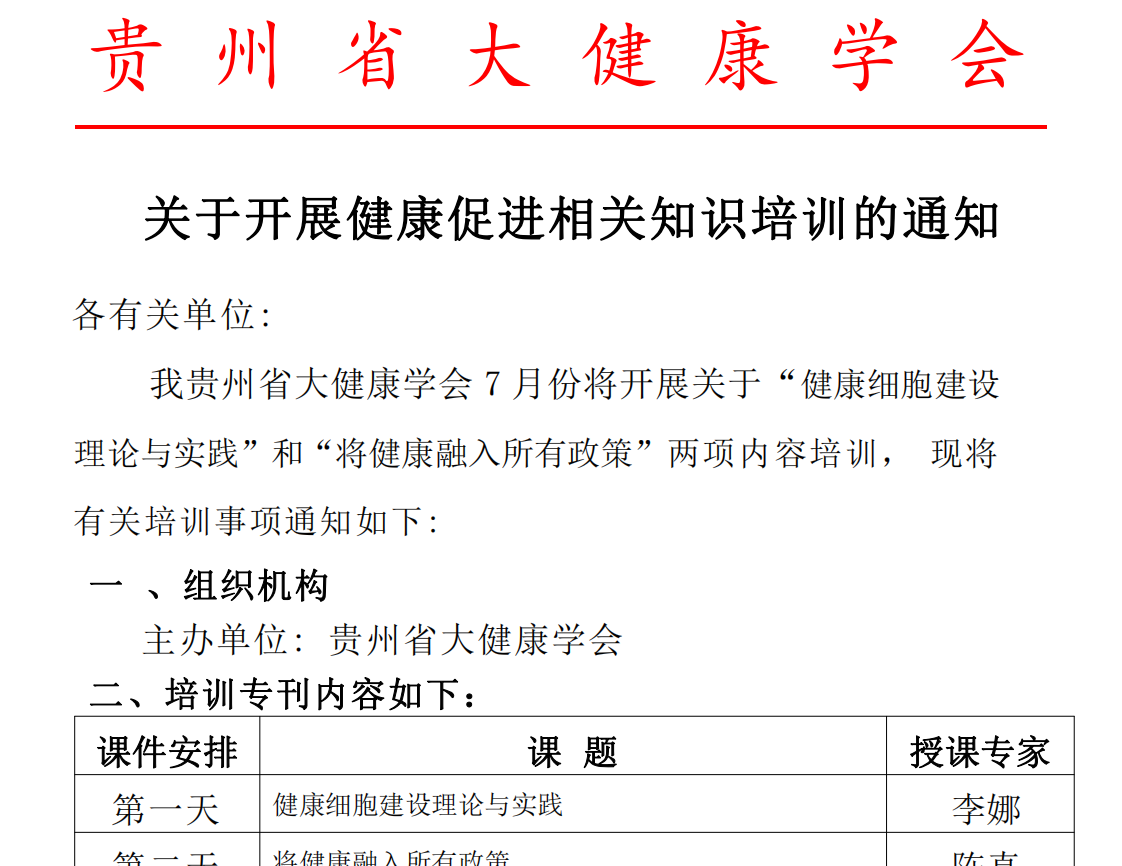 关于开展健康促进相关知识培训的通知