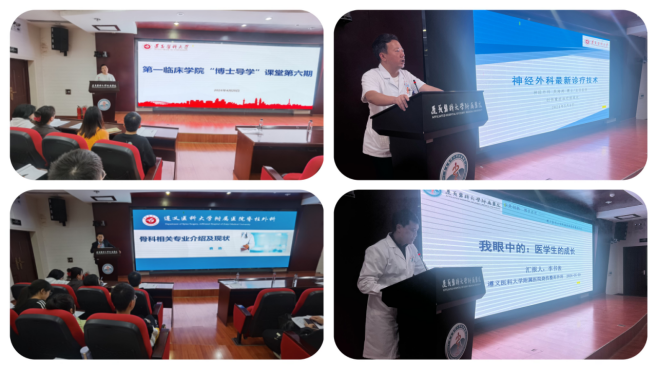 在第六期讲座中,付豹博士从重症医学科的起源、进展,到现在科室所作出的成就向大家详细介绍,同学们感受到重症医学科在抗击新冠疫情做出的巨大贡献,为具有保护生命的最后一道屏障的科室充满敬意。袁浩博士主要对骨科学的分类、现有国内外先进技术以及附院骨科的先进大型手术进行了详细介绍,员工对骨科医务工作者极高的实操能力肃然起敬。