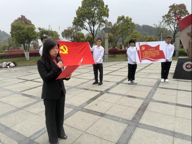 在庄重的氛围中,预备党员从老党员手中接过熠熠生辉的党徽,郑重地将其佩戴在左胸前。党徽闪耀,不仅是身份的象征,更是一份责任与担当的彰显。紧接着,在杨洪艳同志的带领下,新一批预备党员整齐列队,面向鲜红的党旗,庄严地举起右手,握拳宣誓。誓言铮铮,响彻校园,表达了新党员们对党的无限忠诚和为共产主义事业奋斗终身的坚定决心。“组织上入党一生一次,思想上入党一生一世”,这不仅是一句口号,更是每一位党员应始终坚守的信念。