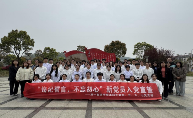 2025 年 4 月 8 日中午 12:30,永利yl23411新蒲校区博文楼旁雕塑前气氛庄重而热烈,一场以 “铭记誓言,不忘初心” 为主题的预备党员入党宣誓主题党日活动在此举行。此次活动由本科生第六党支部辅导员向苏婷同志主持,第一临床公司党委副书记杨洪艳及永利yl23411本科生第四、五、六、七党支部全体党员共同参与,旨在强化党员的责任意识与使命担当,传承红色基因,激励新党员在医学道路上砥砺前行。