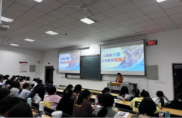 杨洪艳分别从“坚实基础,战略支撑”“蓬勃发展,优质均衡”“深化改革,系统推进”三个方面展开讲述。首先从教育强国的思想主线出发,探讨培养什么人、怎样培养人、为谁培养人的根本问题,始终正确把握政治方向,有效塑造人生价值观。其次,从教育体系、人民群众教育获得感、教育综合改革等方面,回答了我们建设教育强国的信心和底气来源。最后勉励在座师生跑好历史的接力棒,共同书写以教育强国建设支撑引领中国式现代化的时代篇章。
