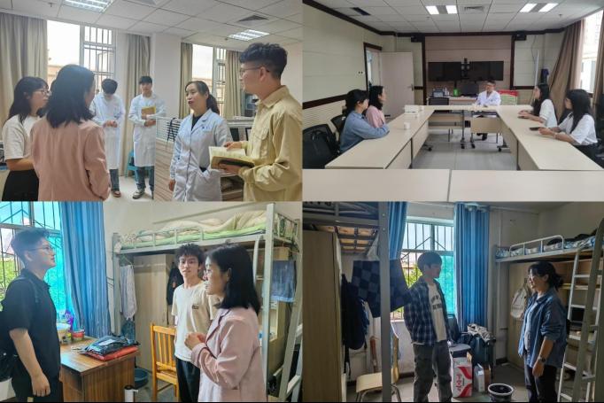 6月5日至6月6日,就业办主任孙会英、员工科科长姚华敏率辅导员孔晓冬、韦丽、林章鹏赴浙江省人民医院毕节医院走访看望实习生。走访团围绕医疗职业行为规范、常见安全问题、职业规划、心理调适技巧、应征入伍政策与国防教育等开展集中宣讲。同时,走访实习生宿舍查看住宿设施、卫生条件及安全状况,并认真听取同学们关于住宿环境、生活便利性等方面的优化建议。走访团还深入住院病房,参与科室教学查房,与带教老师交流,了解员工实习状态,现场指导员工病历书写及医患沟通技能。