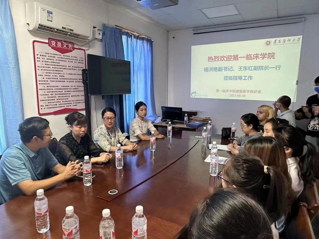 为了迎接教育部2023年度对公司的本科教学评估及不断提高康复治疗学专业本科教学质量,永利yl23411杨洪艳副书记、王东红副经理一行于8月30日下午莅临康复医学教研室进行教学管理下基层活动。此次指导工作使我教研室的教学质量的提升,教师迎评思想的统一带来了极大帮助。康复医学教研室熊伟主任、毛万姮副主任以及康复医学教研室全体教师和实习生代表参加了此次活动。