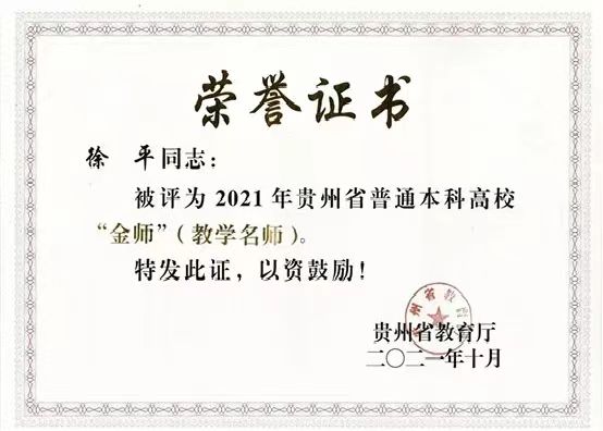 根据《省教育厅关于公布2021年贵州省普通本科高校“金师”名单的通知》(黔教函〔2021〕121号)公布,永利yl23411附属医院神经内科徐平教授喜获2021年贵州省普通本科高校“金师”(教学名师)称号。