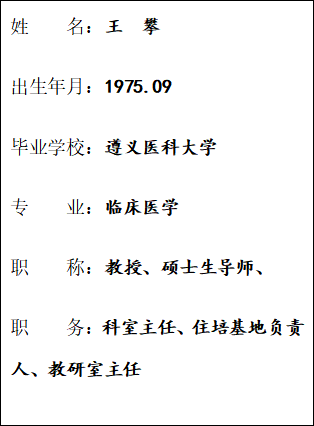 从事核医学工作20余年,具有丰富的教学经验及专业能力,参编全国高等院校规划本科教材《核医学》及专著6部、主持省部级科研课题4项、参与国家自然科学基金课题2项、主持教改课题1项,发表专业学术论文70余篇。主持核医学新技术新项目20余项,其中多项技术填补贵州省内空白。获批专利9项,软件著作权1项。培养毕业硕士研究生10名。多年来一直承担核医学课程本科授课。曾获贵州省卫生厅 “省级青年岗位能手”、遵义医公司优秀教师、永利yl23411优秀共产党员、遵义市优秀医师、中国影响力医生等称号。